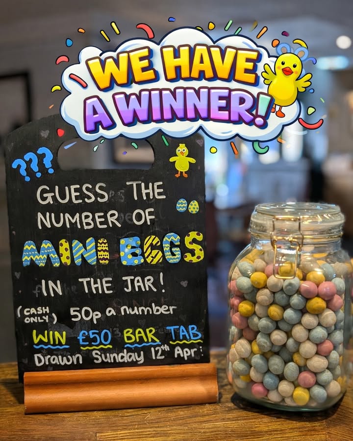 π£ WE HAVE A WINNER! π£ After lots of guesses (and resisting the temptation to eat them all π ), we can finally revealβ¦ π There were 450 mini eggs in the jar! π A huge congratulations to Lorraine Day, who guessed 451! π Lorraine, please see the bar staff for your Β£50 voucher & your 450 mini eggs! π